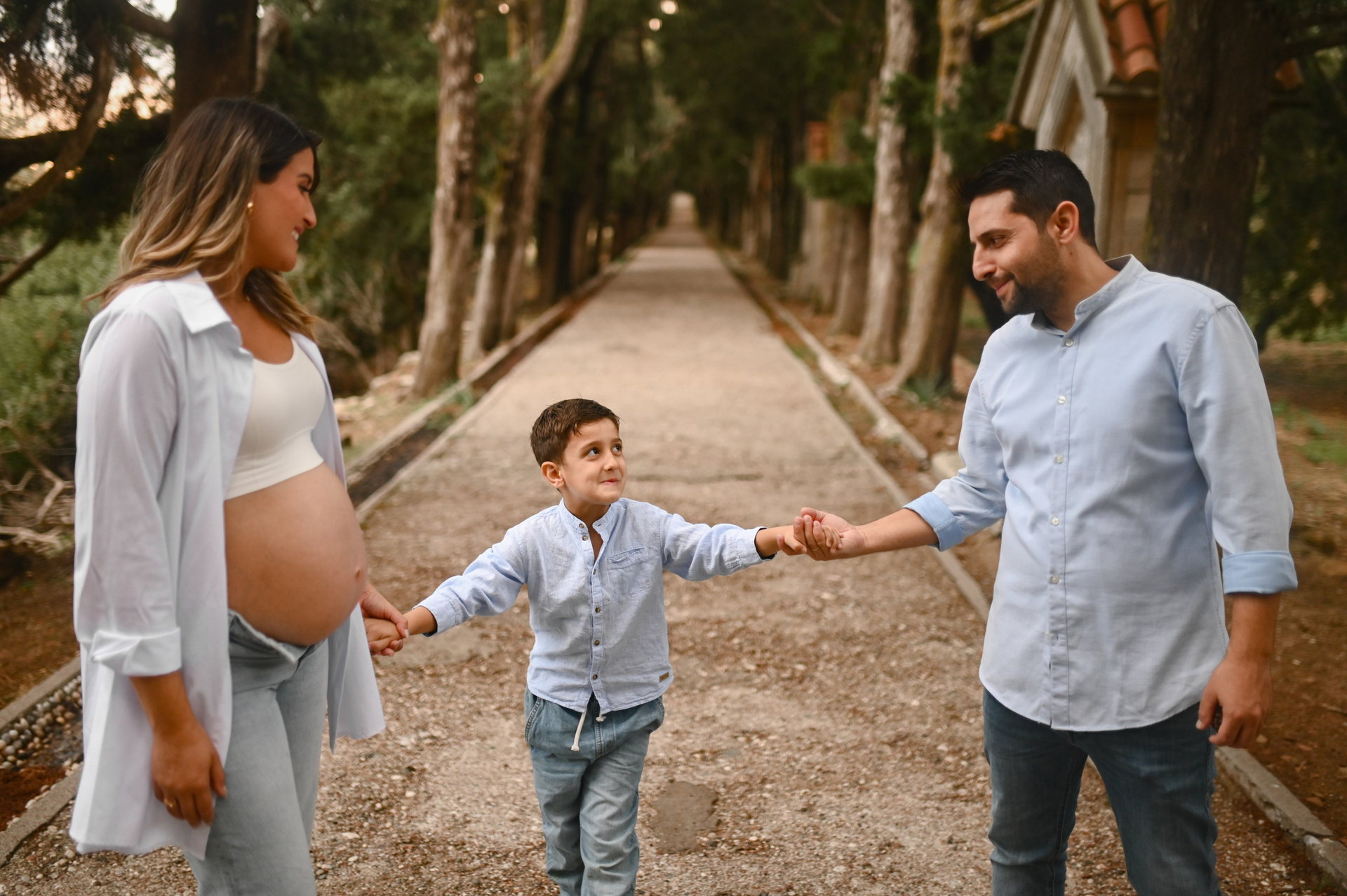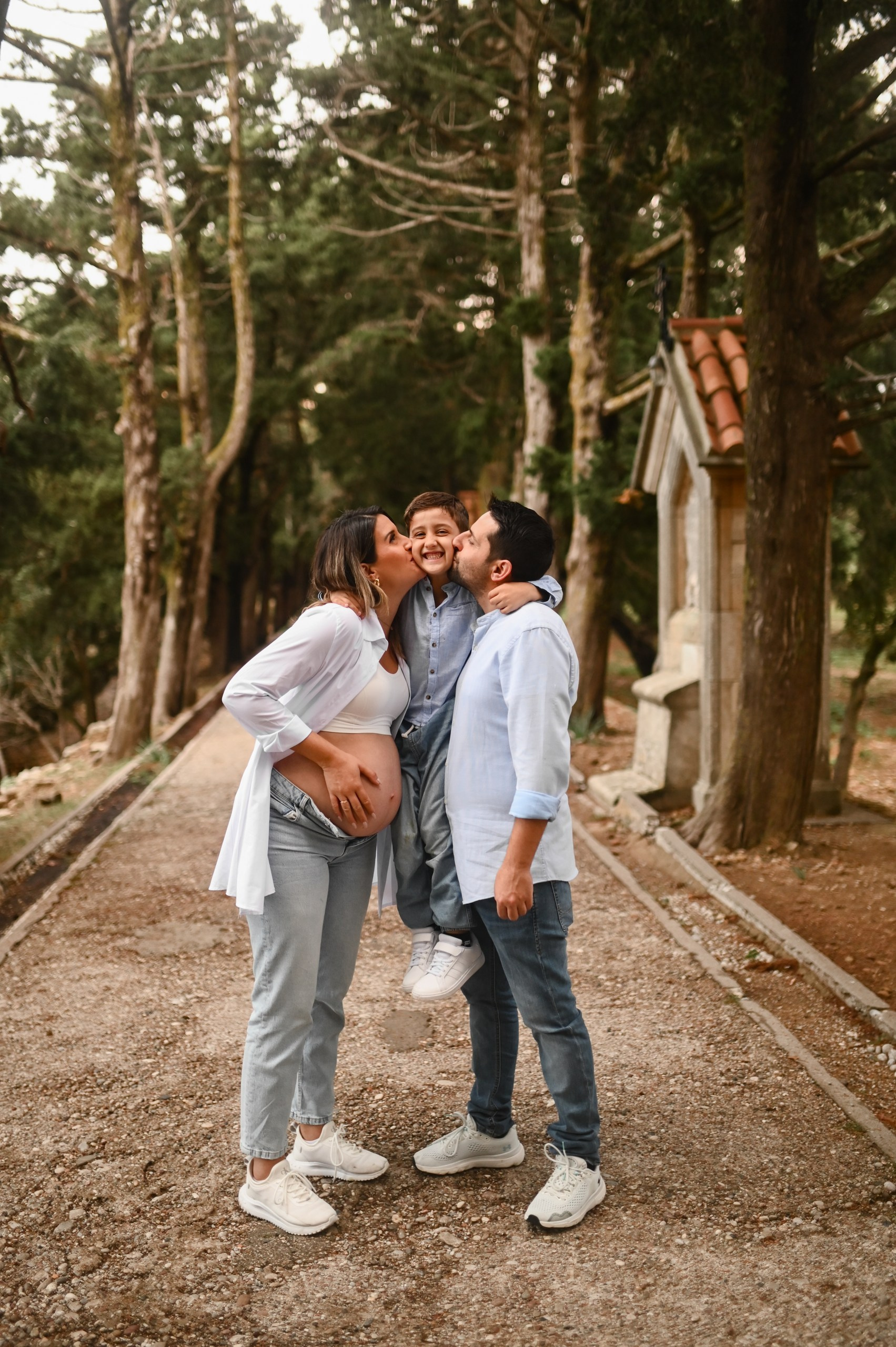 A dreamy pregnancy announcement photoshoot in the forest of Rhodes.